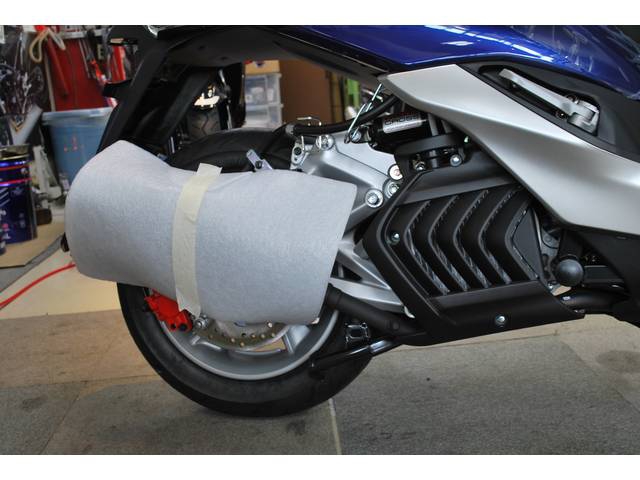 希少のブルーMカラー YMT純正オプションリアスポイラー付!シグナスXのリアキャリア、タンデムバックレスト取付可 車両価格: 31.3万円 (消費税込)