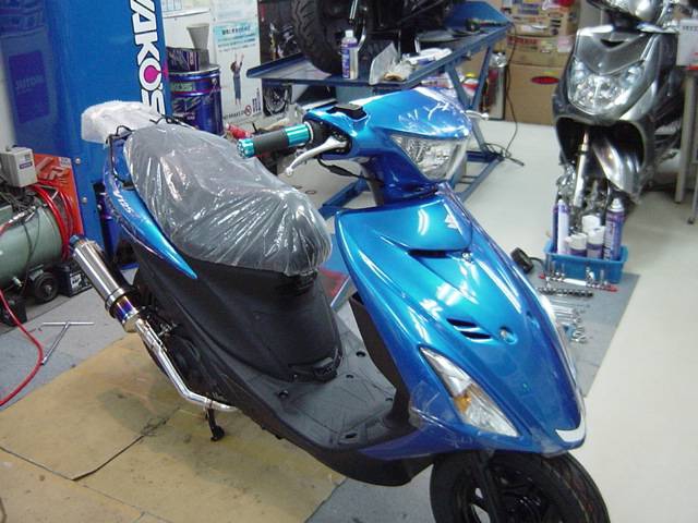 充実装備! レーシングEVOチタンマフラー&アルミブルメタグリップ付!アラーム機能標準装備!ボックス付 車両価格: 25.9万円 (消費税込)