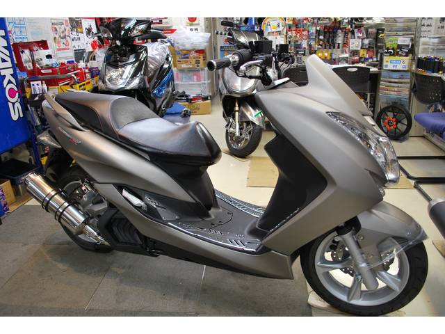 足つき性も向上してさらに乗りやすくなりました!フロント約4cmダウン、リア約5cmダウン、シートで約2cmダウンです。是非ご来店いただき体感してください!マフラーの音も確認出来ます!お日にちをいただき他の色でもお作り致します。通勤通学、お仕事用、ちょいのり、レジャー、などに、とっても便利なオートバイ(スクーター)を各車種ノーマル車からカスタム車、各種快適オプションパーツ多数お取り扱いしています!お気軽にお電話、メール、ご来店お待ちしております!アフターサポートもお任せ下さい!バイクショップイーグル電話番号は0335988551です。